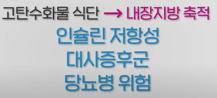그렇게 되면 내장지방이 쌓이게 되고 이런 내장 지방의 축적은 인슐린 저항성, 대사증후군, 당뇨병과 같은 성인병으로 연결되기 때문에 적절한 단백질을 함유한 육류를 현명하게 선택해서 섭취해야 합니다.