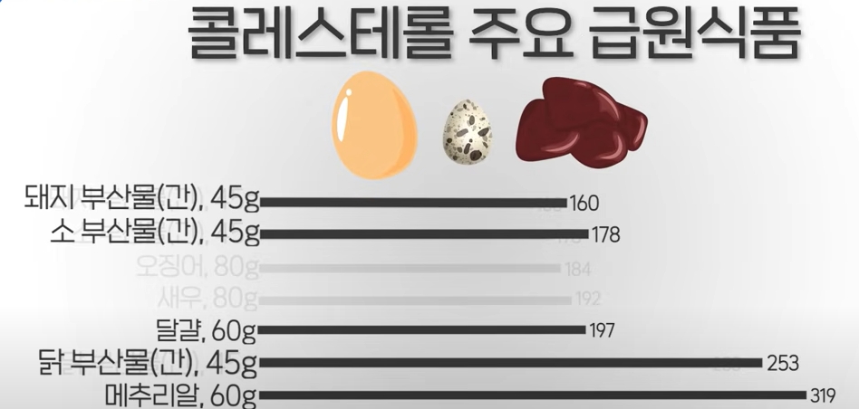 하지만 이것을 보고 궁금증이 생기실겁니다. 콜레스테롤를 낮추려면 콜레스테롤을 덜 먹어야 하는 거 아닌지에 대한 궁금증입니다. 보통사람의 경우에는 매일 달걀 1개, 당뇨 등 만성질환이 있는 분은 1주일에 달걀 2~3개 정도는 괜찮다는 말이 나오게 되고 이것이 언론을 타게 되고 고지혈증 환자도 콜레스테롤 맘껏 먹어도 된다는 기사가 나가기도 하였습니다. 콜레스테롤은 우리 몸에서 필요한 물질이기 때문에 일정량이 우리 몸에 공금이 돼야 합니다.