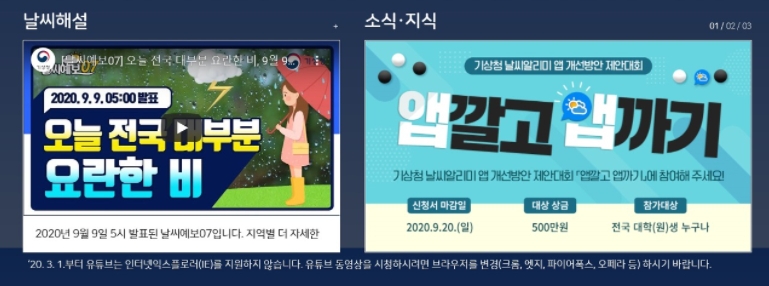날씨 관련 소식이나 여러가지 지식을 제공하고 있습니다.