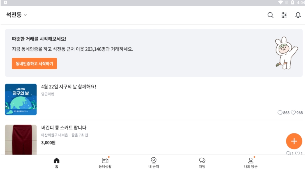 동네인증이 완료 되면 당근마켓 pc버전을 모바일과 동일한 방법을 사용할 수 있습니다.