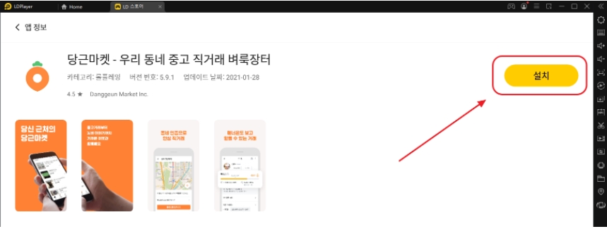 당근마켓 pc버전 설치를 클릭하여 설치를 진행합니다.