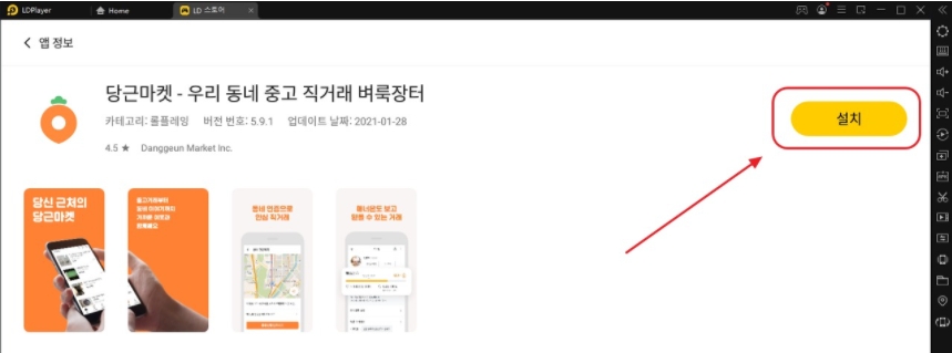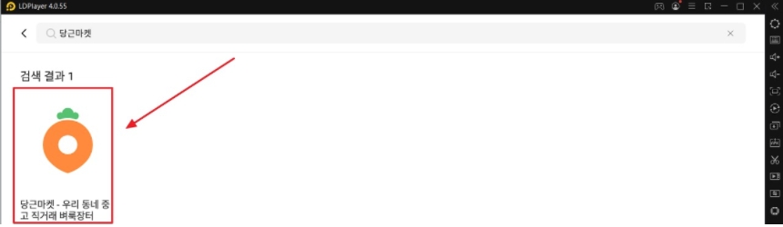 ld플레이어 상단에 있는 검색창에 '당근마켓'이라고 검색합니다.