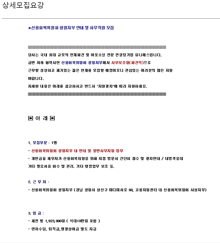 좀 더 상세한 구인구직 정보를 확인 할 수 있습니다.
