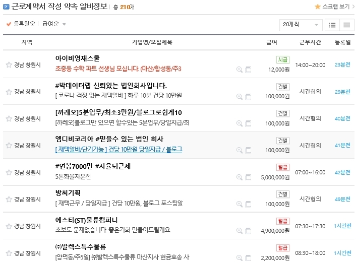 근로계약서 작성을 약속하는 알바를 찾아보았습니다.