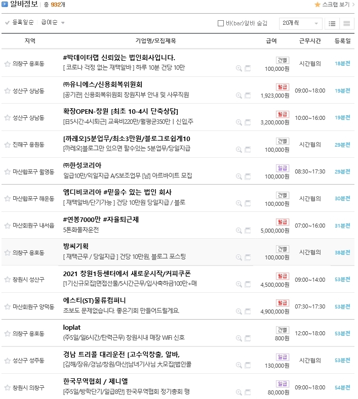 저가 선택한 구인구직 정보는 932개가 검색 되었습니다. 여러 가지 구인구직 정보 중 아무거나 클릭하여 들어가 보겠습니다.