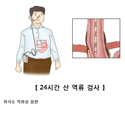 역류성 식도염의 진단은 위내시경이나, 식도 내압 검사, 24시간 식도 산도 검사를 통해 진단 할 수 있습니다.