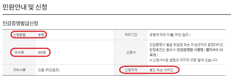 인감증명발급 신청 민원서비스를 확인한 결과 신청방법은 직접 방문하여 신청할 수 있다고 나와있습니다. 인감증명서는 매우 중요한 문서라서 인터넷 발급이 가능하지 않을 거라 생각하였는데 역시 인터넷 발급은 되지 않았습니다.