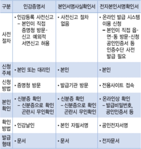 인감증명서와 본인서명확인서 비교는 아래와 같습니다. 참고하세요.