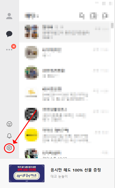 pc버전 인경우 좌측 하단에 있는 카카오톡 톱니 바퀴를 클릭합니다.
