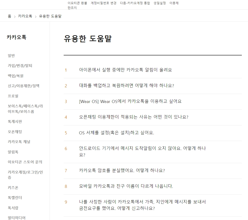 카카오 고객센터를 통해 각 서비스 도움말을 확인해보세요.