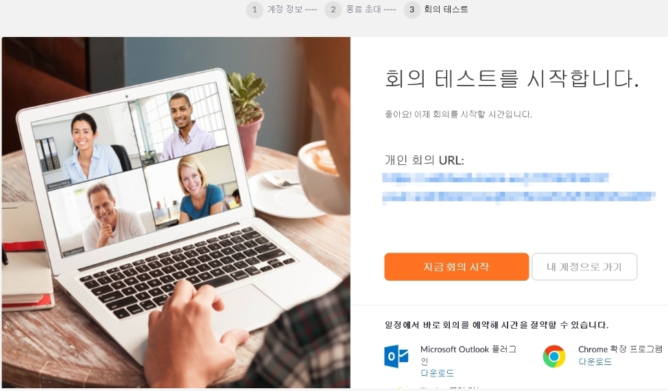 zoom 화상회의 다운로드 및 설치가 끝나면 zoom 서비스를 이용할 수 있습니다.