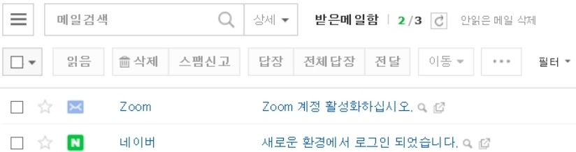 메일을 확인하시면 'zoom 계정 활성화하십시오.'라고 이메일이 온것을 확인할 수 있습니다. 이메일을 확인합니다.